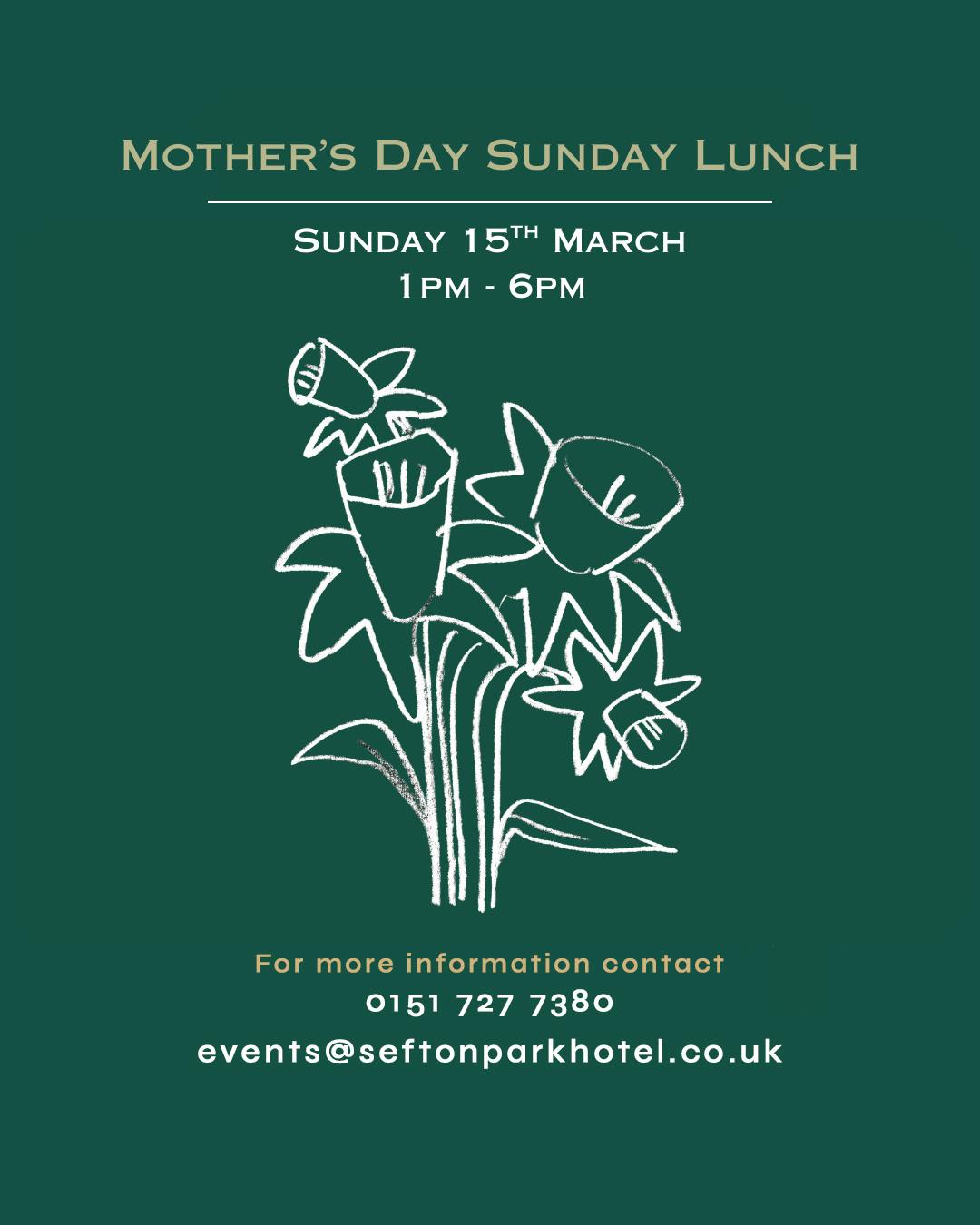 Celebrate Mothering Sunday, 15th March 2026 at Sefton Park Hotel with a spectacular Sunday Lunch. We’ve kept our pricing exactly the same as our usual Sunday service, offering two courses for £22.95 or three courses for £27.95, with a dedicated children’s menu available for £9.95.
